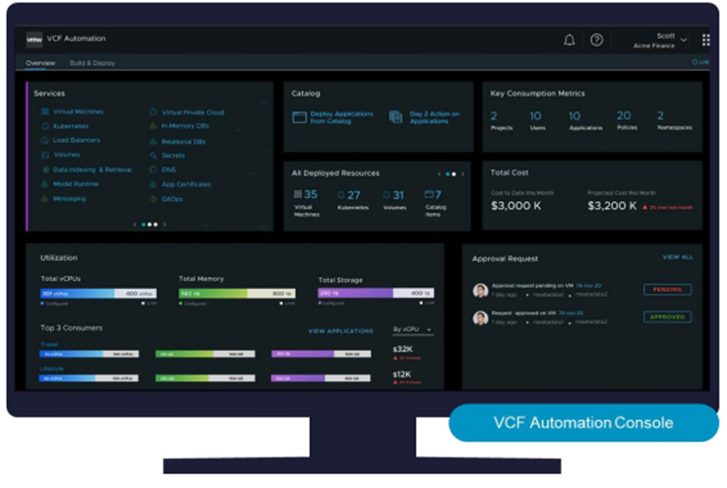 - Self-service provisioning van VMs, Kubernetes en AI via VCF Automation