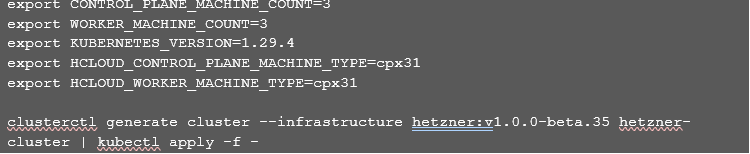 For Hetzner Cloud kan jeg udrulle en workload-cluster fra min management-cluster blot ved at: