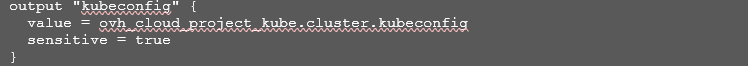 For OVHcloud kan kubeconfig eksporteres via Terraform-output: