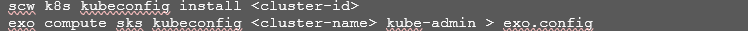 Hvis du ikke ønsker at gemme din kubeconfig i din Terraform statefile, understøtter Scaleway og Exoscale også at hente kubeconfig via CLI: