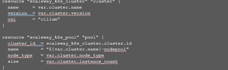 Terraform-koden for Scaleway og Exoscale følger samme principper