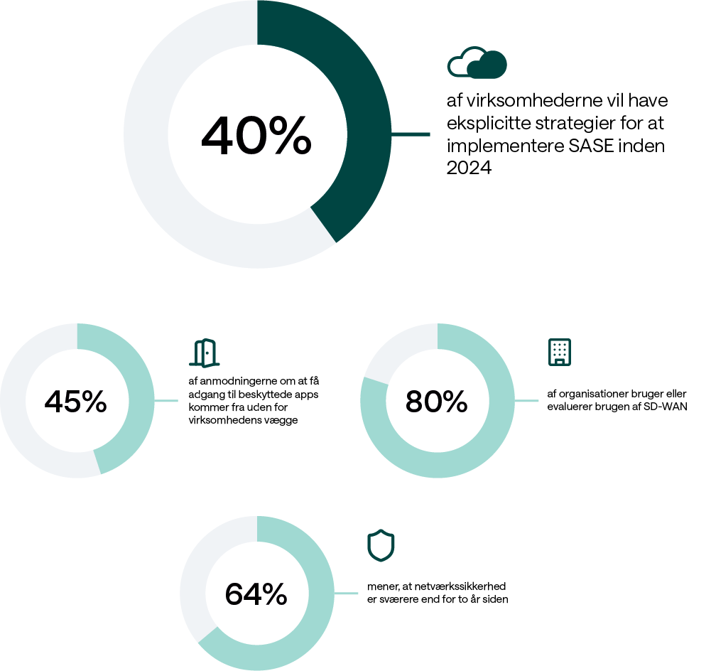 Med SASE har brugerne sikker adgang til arbejdsressourcer og applikationer. Nogle vil arbejde på kontoret, andre hjemme og helt andre igen vil skifte lokation efter behov og lyst, og kun en ting er sikkert – vores arbejdsmønstre vil blive ved med at skifte.