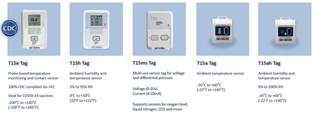 • T15e Tag; Voor nauwkeurige, probe‑gebaseerde temperatuurmetingen in extreme koude of warmte.