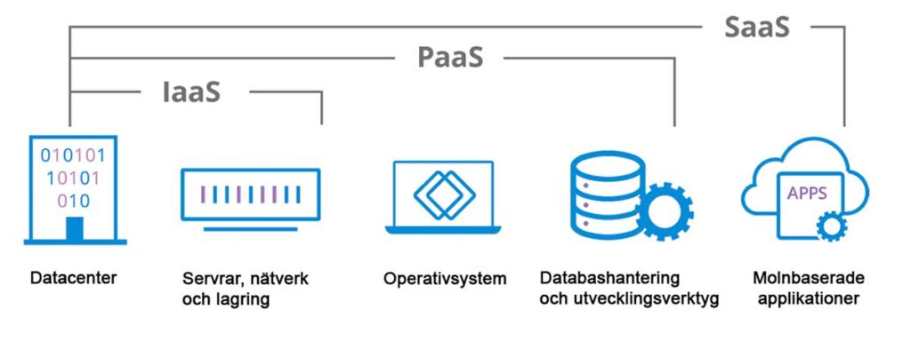 IaaS hänvisar till molnberäkningsinfrastruktur (servrar, lagring etc) vilket hanteras av en molnleverantör.