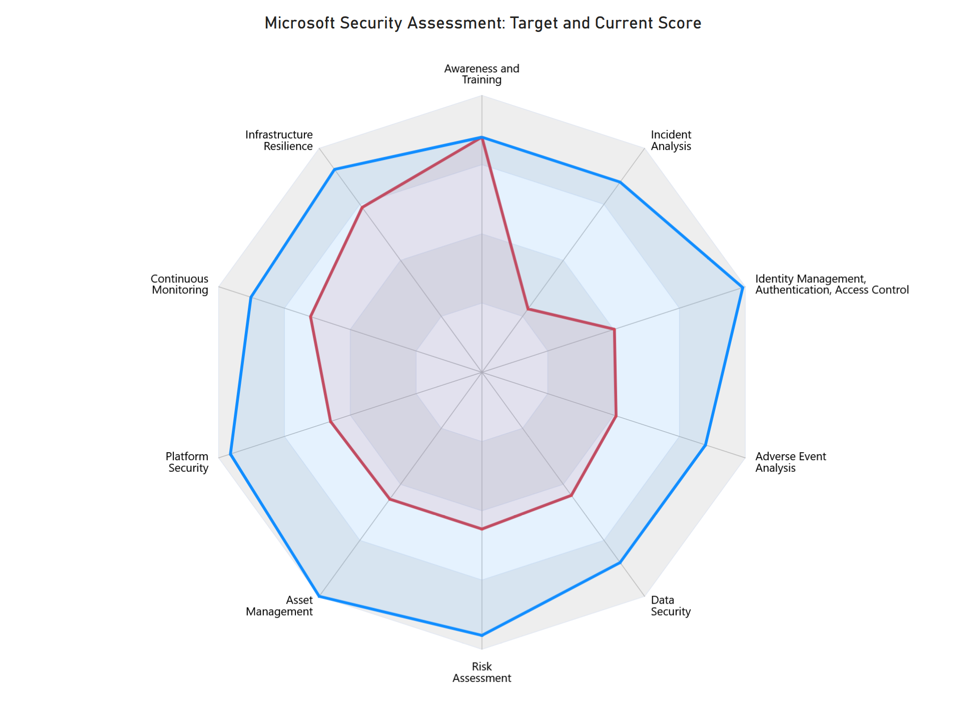 Following the Microsoft 365 Security Maturity Assessment, a detailed report will be provided outlining any proposed improvements or remediations to take, and which features within Microsoft 365 could be leveraged to improve security maturity. As part of the report, we will provide an overview of the organisation’s current and potential security maturity, broken down into high-level categories. We will also be able to deliver any suggested remediation actions, where the required resource or knowledge is limited.